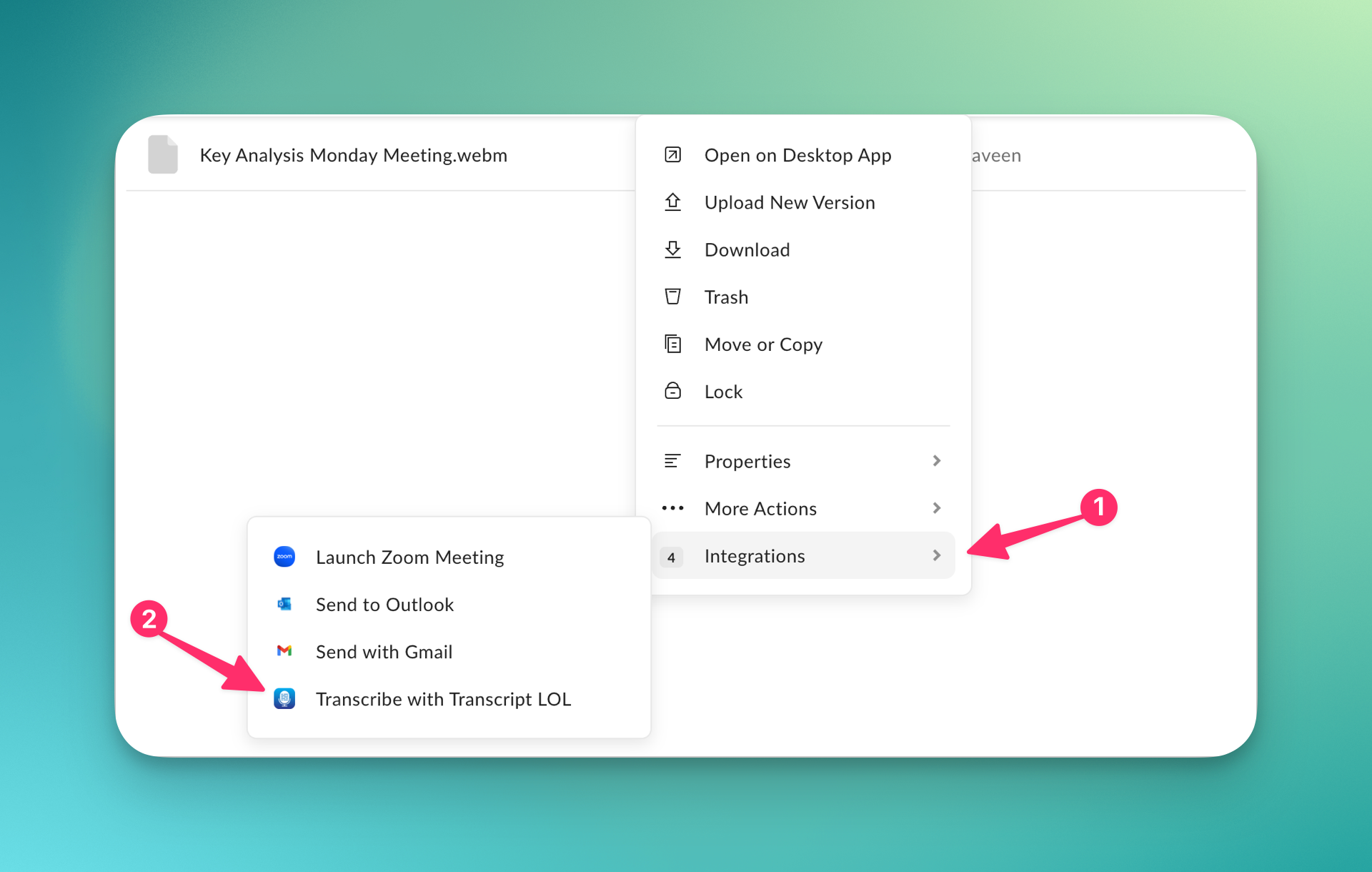 How to transcribe Box audio or video files using Transcript LOL